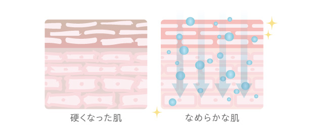 しかし、もともと水をはじく性質の肌の角質層が加齢によって硬くなると、スキンケアの浸透が悪くなります。