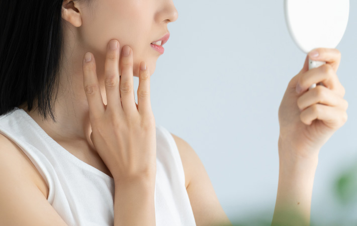 朝起きたとき、頬や口まわりがカサつき、粉をふく――